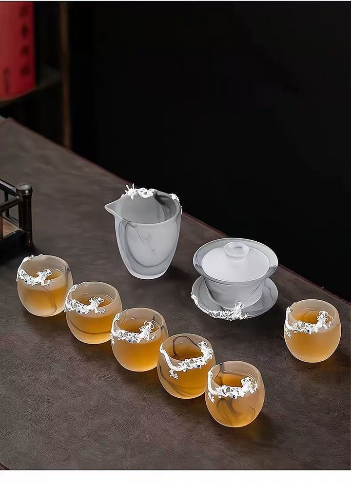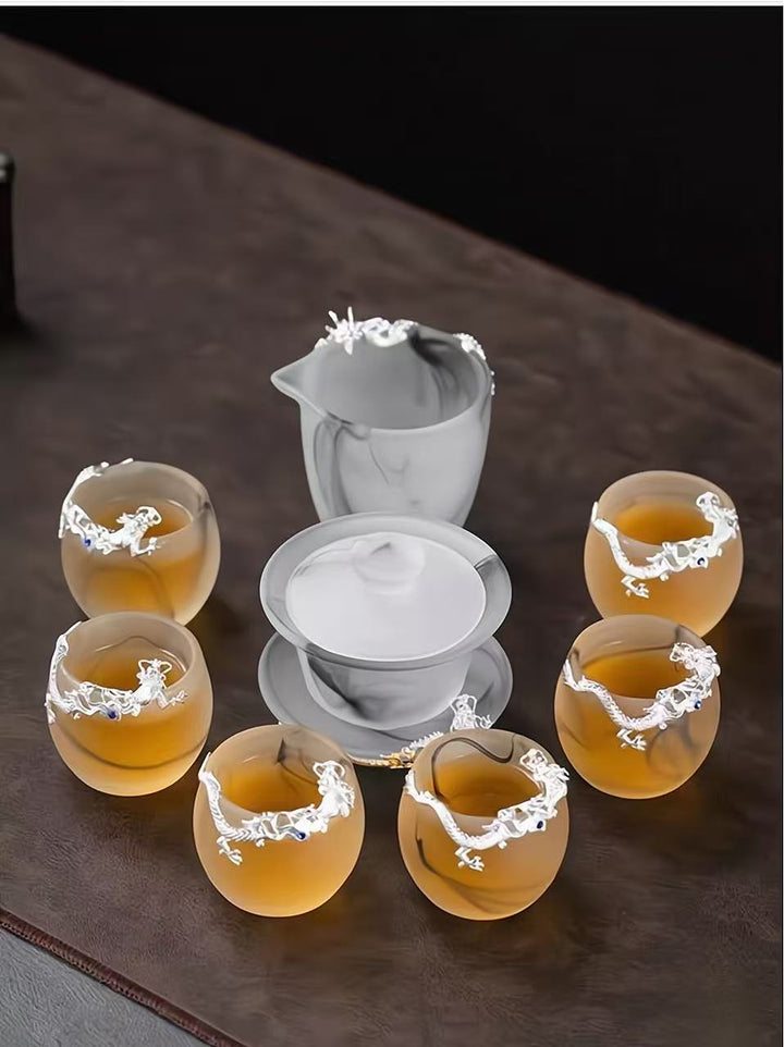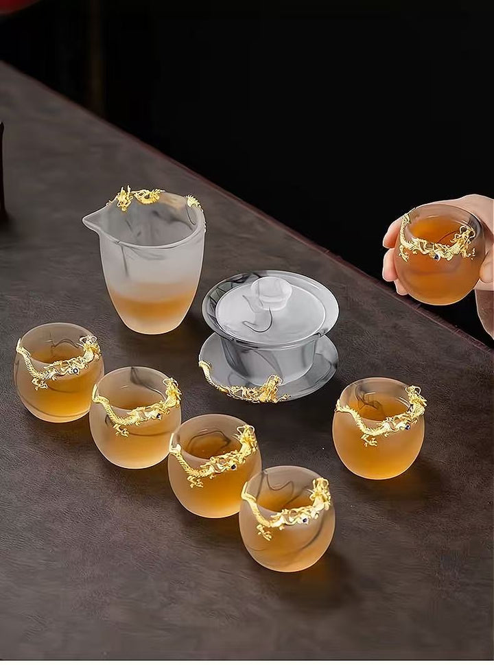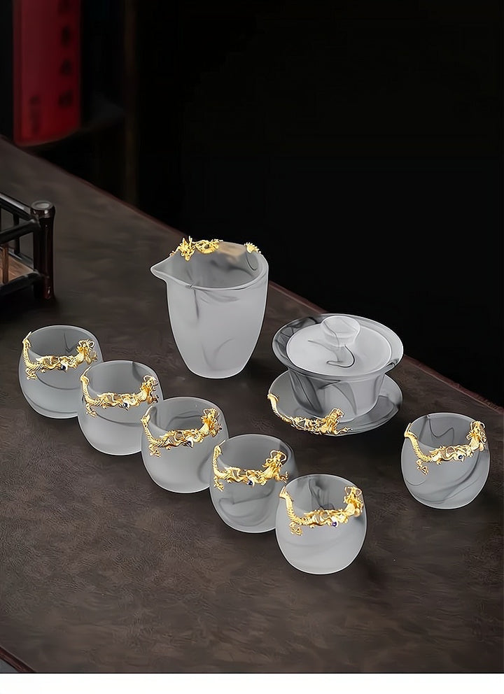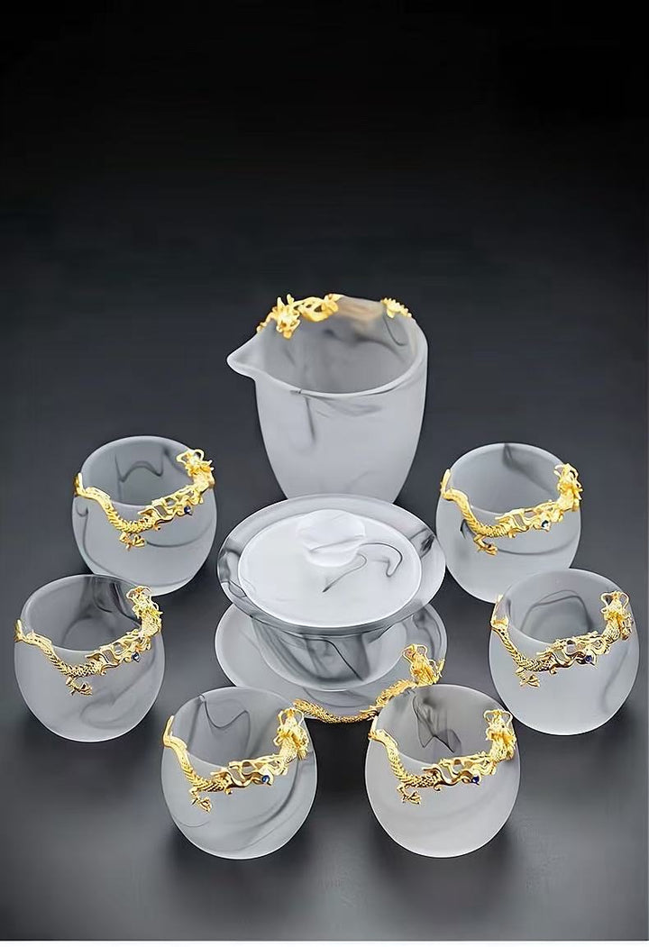 Luxury Liuli Glass Kung Fu Tea Set – Gaiwan, Dragon Cups & Gift Box