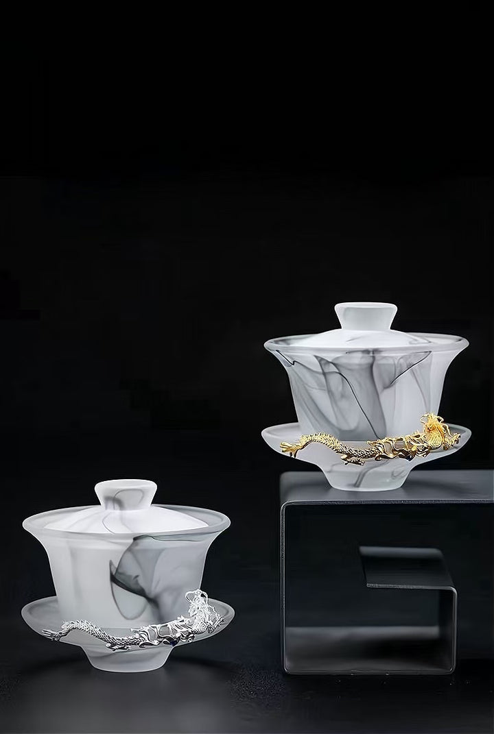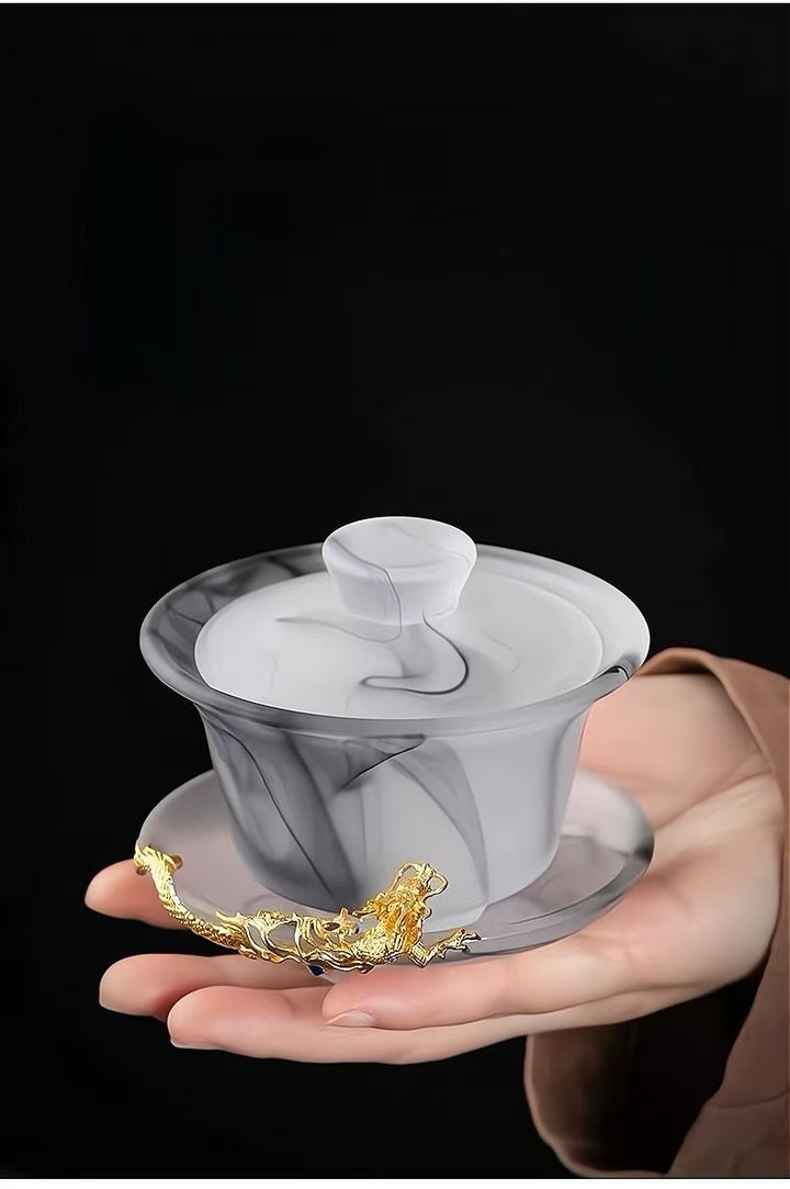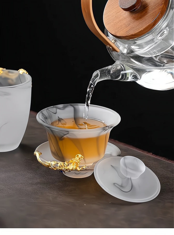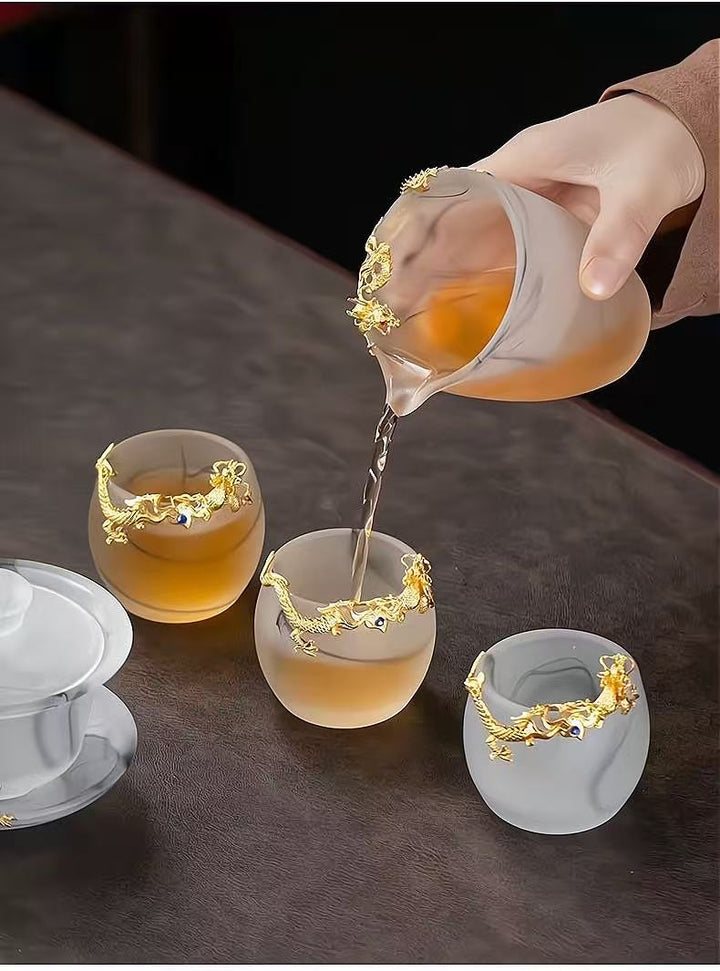Luxury Liuli Glass Kung Fu Tea Set – Gaiwan, Dragon Cups & Gift Box